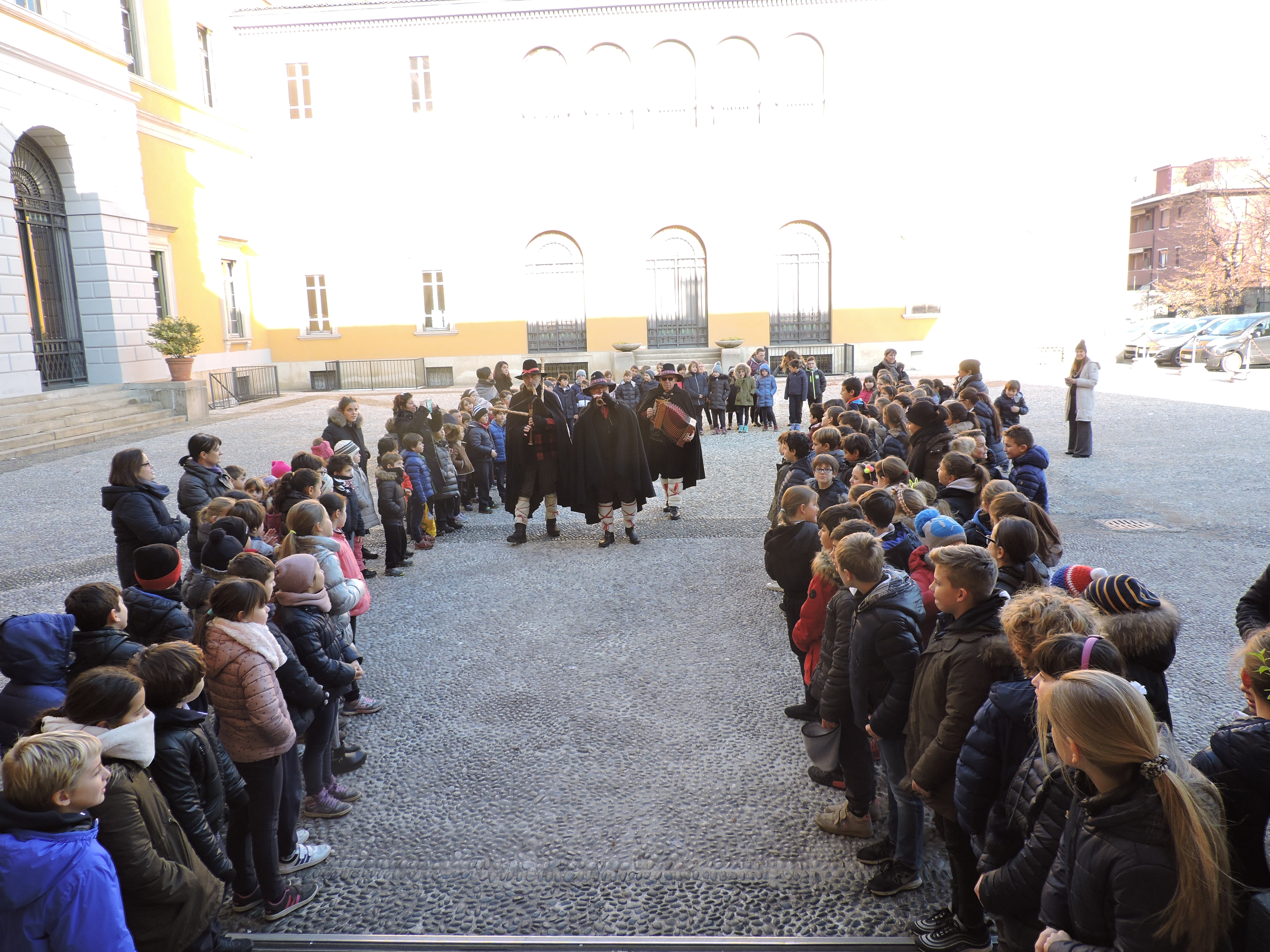 Sono i Pedra, gli zampognari di Miradolo Terme. Sono ormai divenuti nostri amici grazie ad Andrea, nostro alunno, che ce li ha fatti incontrare. Anche quest’anno sono venuti a trovarci.