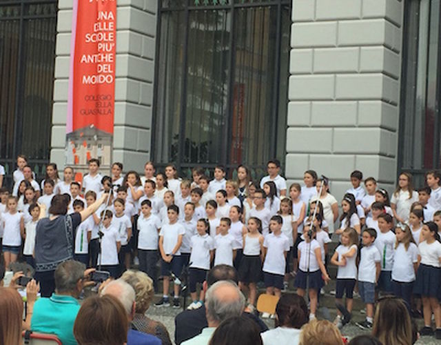 Giovedì 7 giugno, nel piazzale del Collegio del Guastalla, si è esibito il Guastalla Vocal Choir, composto dai bambini della Scuola primaria e dai ragazzi della Scuola secondaria di I grado. Diretti dagli insegnanti di musica Ivano Palma e Marika Zonca, i ragazzi hanno eseguito con estrema bravura brani della tradizione italiana, oltre a canzoni in spagnolo e inglese. Non sono poi mancate le performance da veri professionisti di tre studenti di terza Liceo scientifico: Gabriele (chitarra classica), Giacomo (pianoforte) e Caterina (canto di un brano in portoghese).