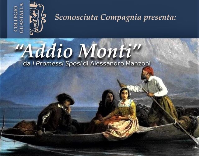 Sabato 28 maggio alle ore 21.00, il Teatro del Collegio della Guastalla ospiterà Addio Monti, opera messa in scena da Sconosciuta compagnia. È il frutto del laboratorio teatrale rivolto ai ragazzi dei Licei. Il tema di quest'anno era rappresentato dall'approfondimento dei primi otto capitoli de I promessi sposi, dai rocamboleschi episodi iniziali sino al momento più poetico del romanzo, l'Addio ai monti. Lo spettacolo, che ha coinvolto alcuni professori e oltre venti ragazzi, si avvale della regia di Andrea Carabelli.