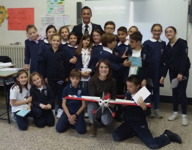 Con l’aiuto di un modellino abbiamo visionato la struttura di un aereo, scoperto le forze fisiche che regolano il volo e appreso i comportamenti da tenere durante il viaggio. Rispondendo alle nostre curiosità, il pilota ci ha rivelato quali sono gli aeroporti piú sicuri e i più difficili in cui atterrare.
