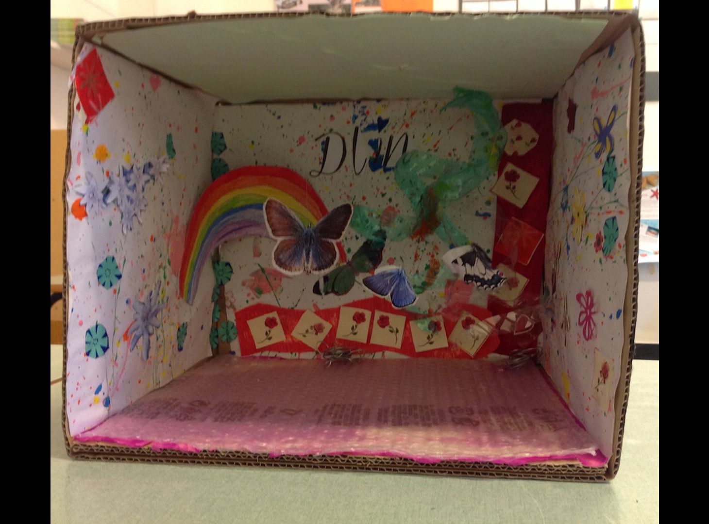 Attraverso la strada tracciata dagli indizi, i bambini hanno scoperto il messaggio che ogni artista lascia: ogni dipinto racconta una storia, ogni storia ha i suoi personaggi e un contesto fisico in cui viene rappresentata, e degli oggetti importanti che aiutano a scoprire il significato. Colto questo aspetto interessante, gli alunni si sono messi all'opera e hanno realizzato e costruito scatole, seguendo l'esempio dell'artista Joseph Cornell, nelle quali hanno disegnato oggetti in proporzione, realizzando gli interni di una casa: camera da letto, living, cucina, bagno.