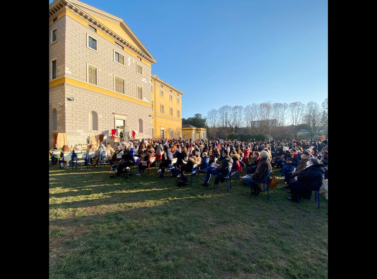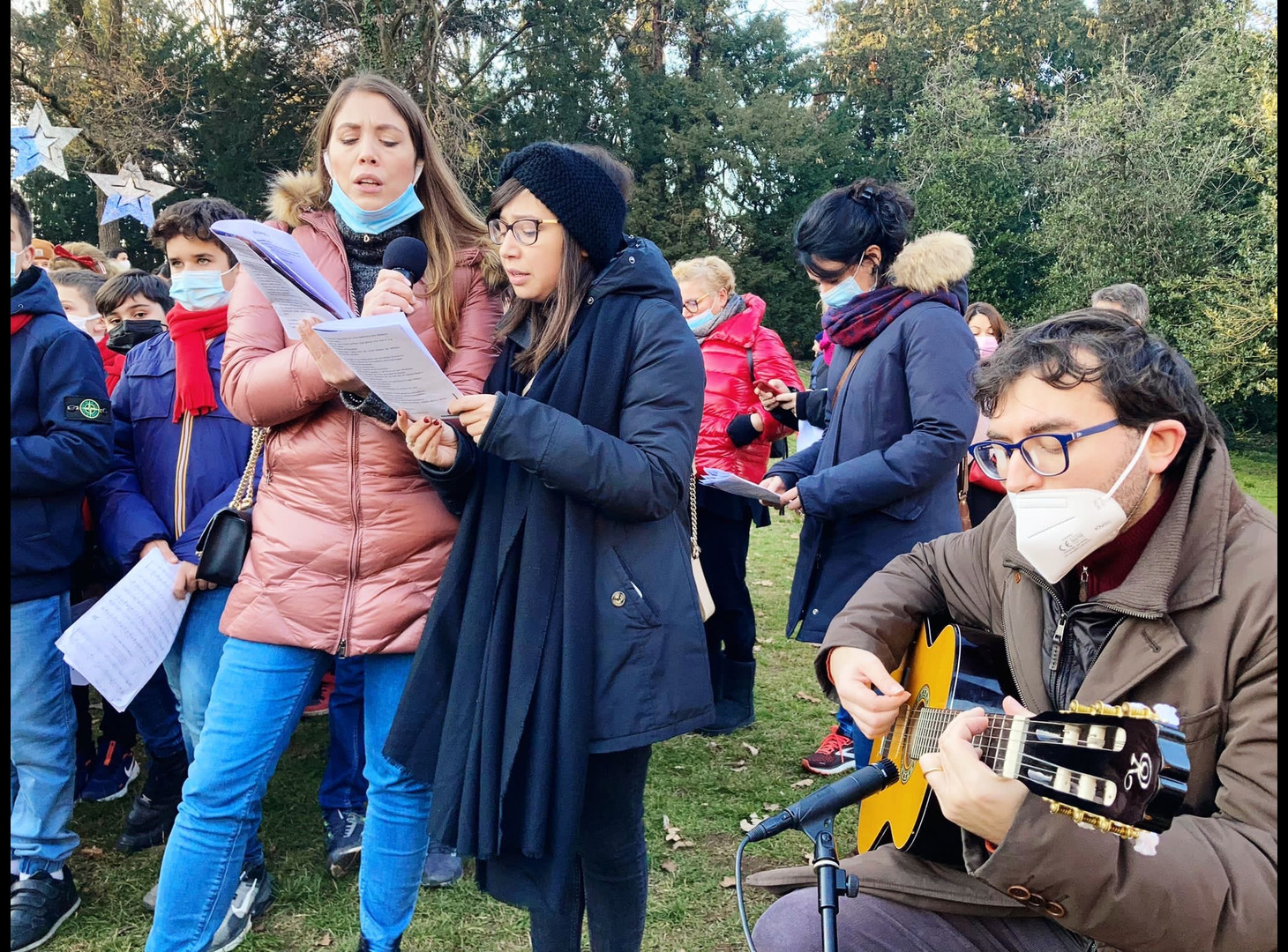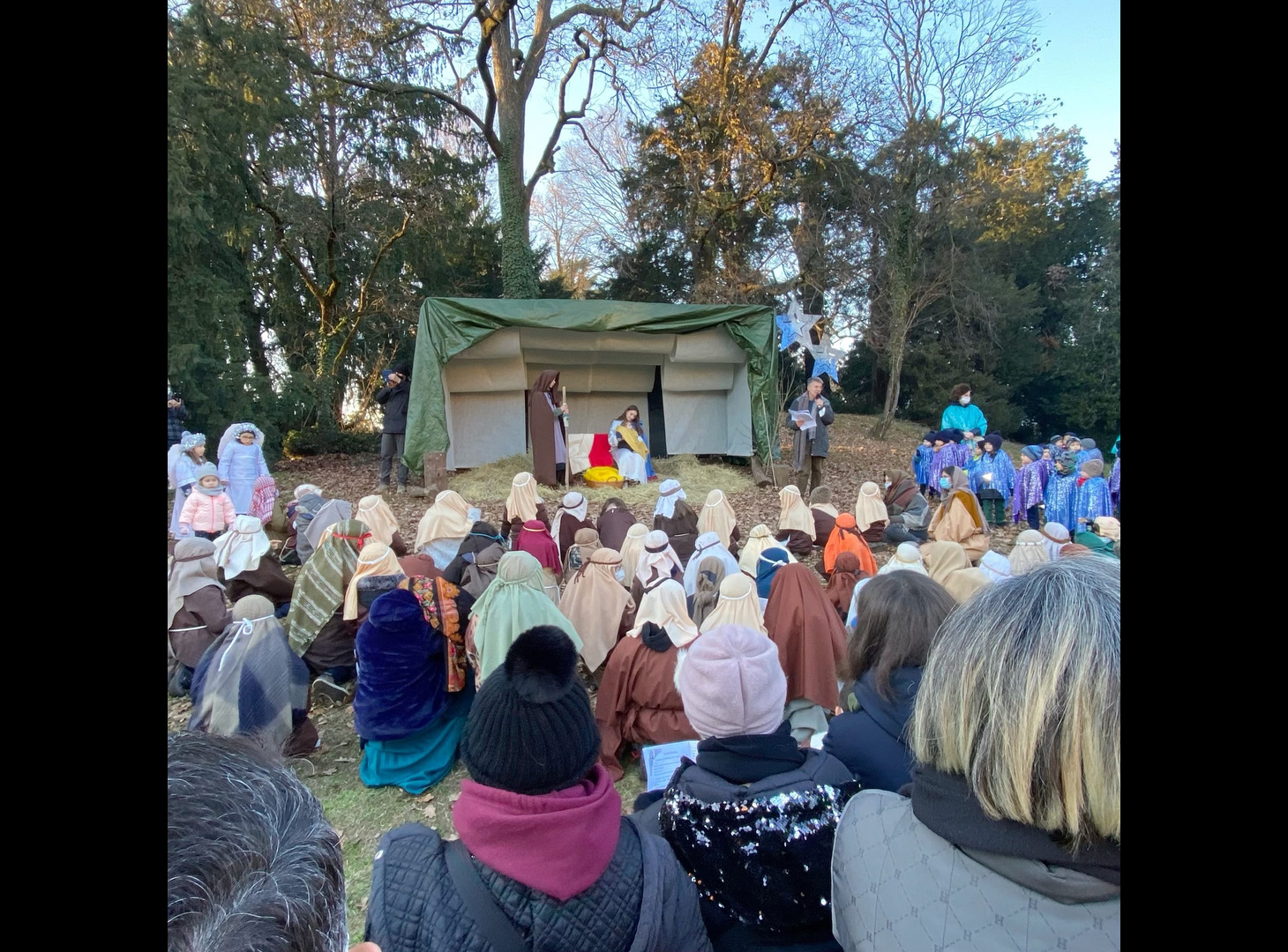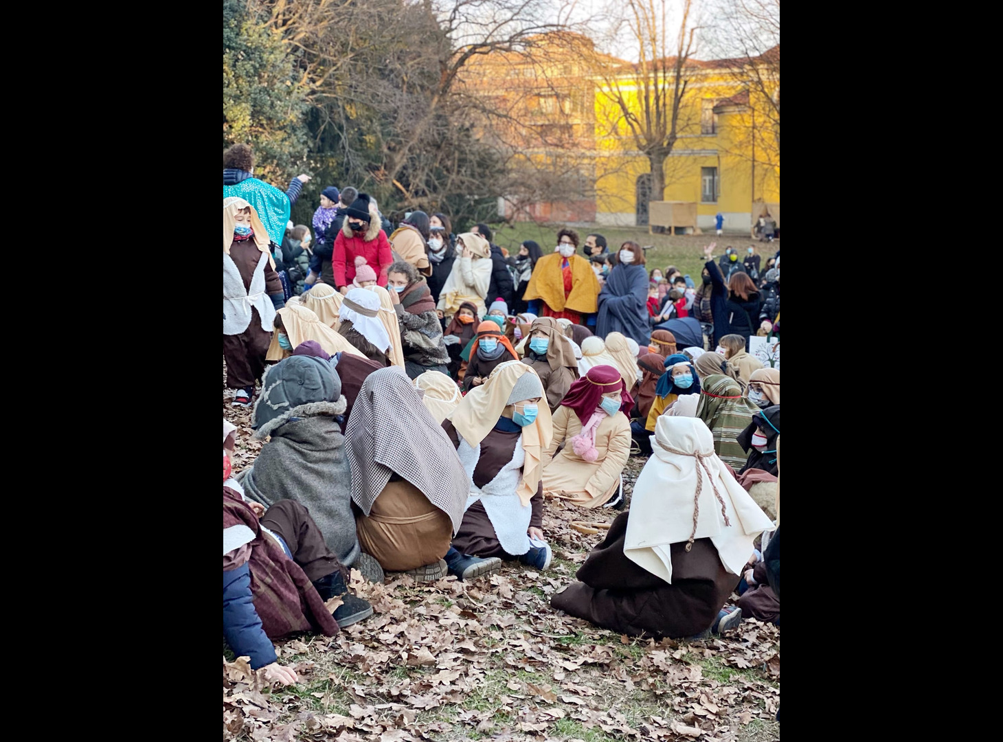 È stato un meraviglioso gesto di popolo, vissuto nel pieno delle norme di sicurezza per contrastare il Covid per entrare, anche in queste settimane così faticose e provanti, nell'attesa del Natale. Il presepe vivente del Collegio della Guastalla ha radunato centinaia di genitori, docenti, ragazzi e bambini nel parco della scuola, domenica 19 dicembre, per rivivere i passi del Vangelo che raccontano la nascita di Gesù. Il momento è stato accompagnato dai canti eseguiti dagli studenti della scuola secondaria di I grado, mentre alcuni studenti del Liceo hanno curato la rappresentazione scenica. Ai bambini della Primaria è spettato il compito di pastori mentre per i più piccoli dell'infanzia il ruolo di angeli. Nessuno è rimasto escluso in questa bellissima rappresentazione, segno concreto della scuola in avvicinamento al Natale.