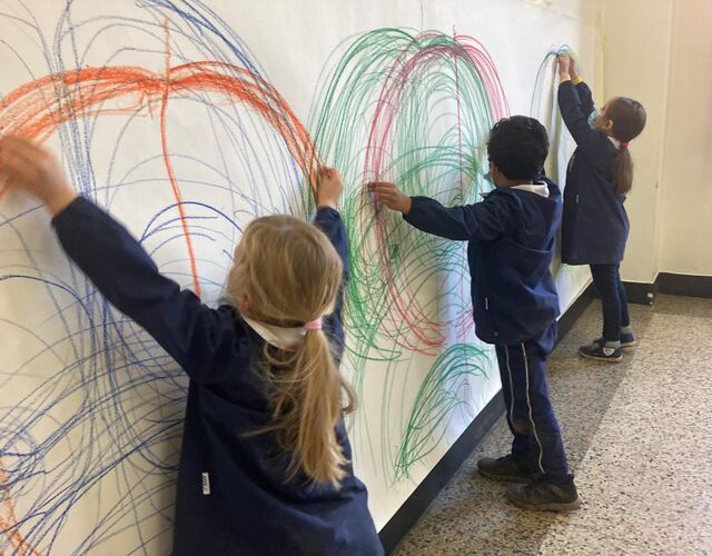 Un percorso a sostegno di un gesto grafico sempre più libero, per ciascuno dei nostri bambini. Gesti che hanno stupito e divertito ciascuno, che arrivano a lasciare traccia persino del proprio corpo, nella sua interezza.