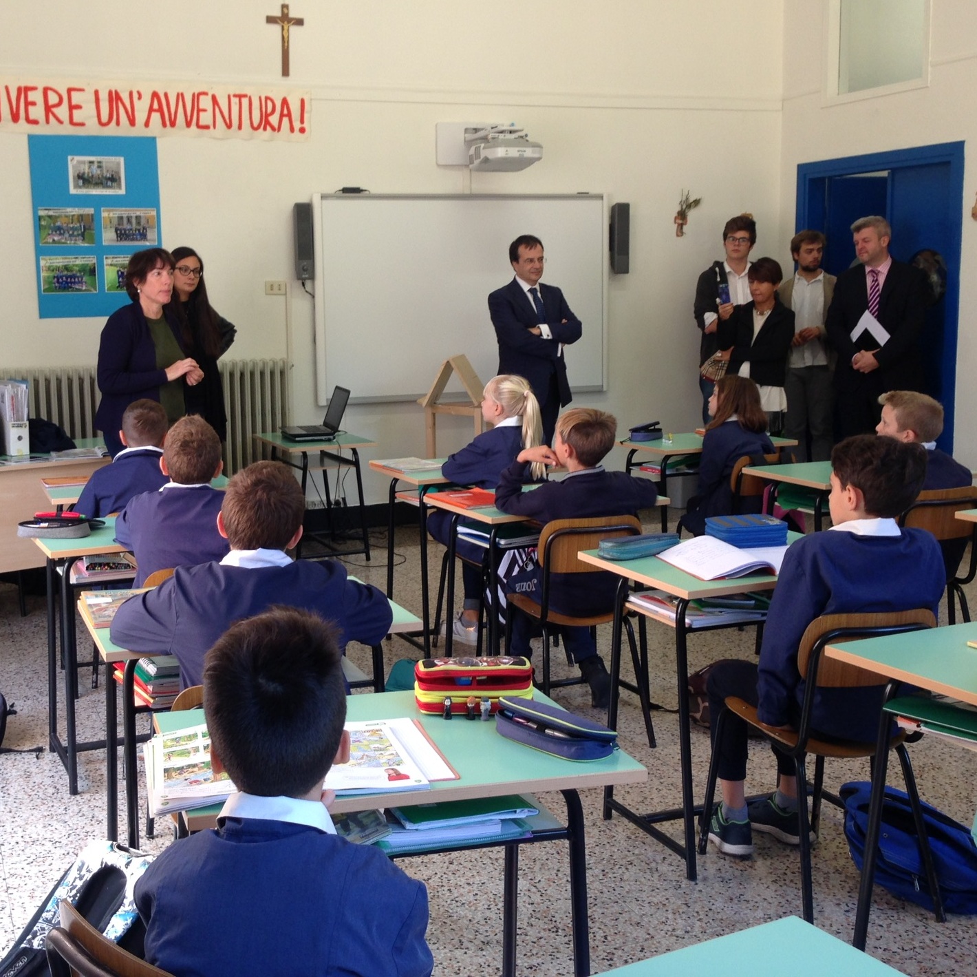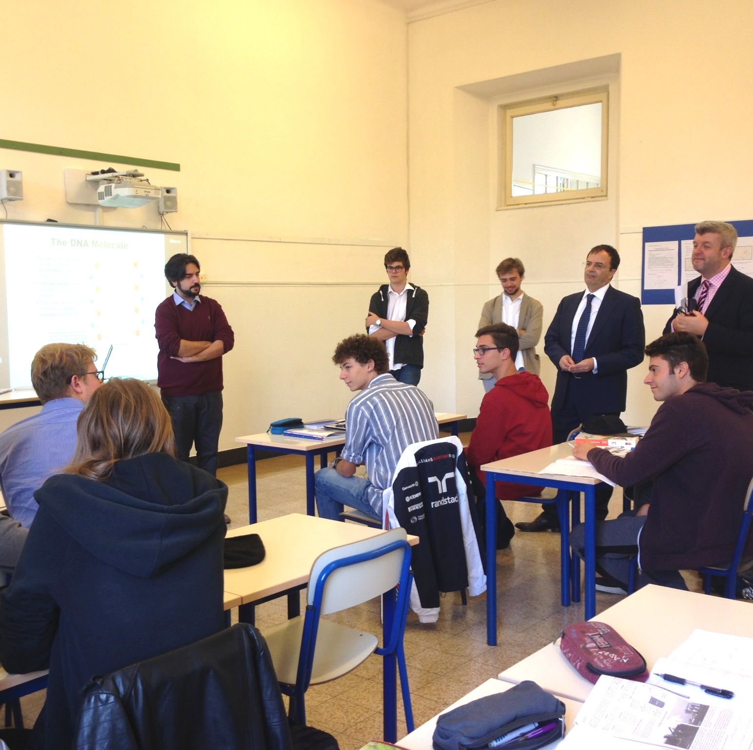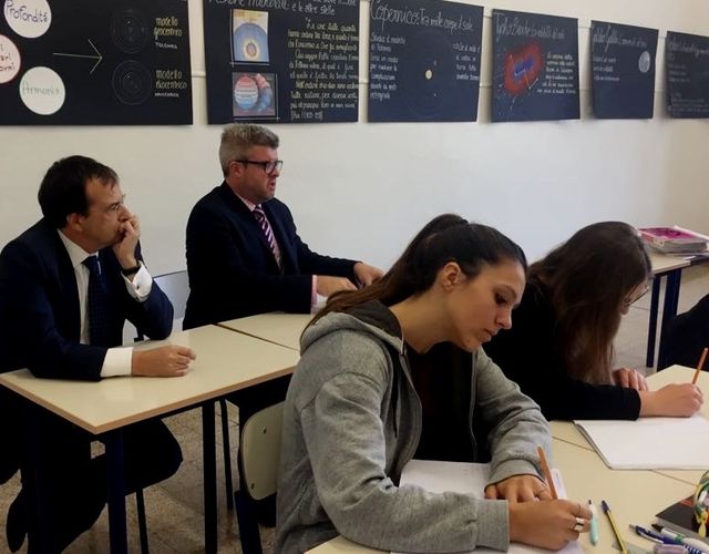 Dopo una visita agli ambienti del Collegio, ha voluto valutare personalmente il lavoro nelle classi: alla Primaria ha partecipato a una lezione sull'ambiente proposta dall’insegnante madrelingua Maureen Quinn, alla Secondaria di I grado ha collaborato a Insegnare il futuro condotto dalla Prof. Emanuela Grassi, al Liceo scientifico si è inserito in lezioni CLIL di chimica e trigonometria guidate dai proff. Roberto Bresciani e Maria Giulia Calzolaio.