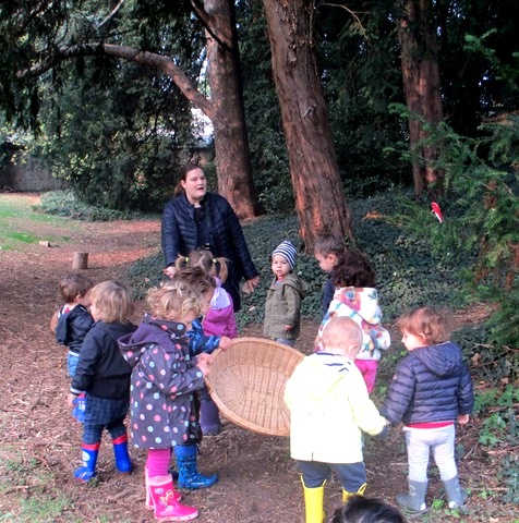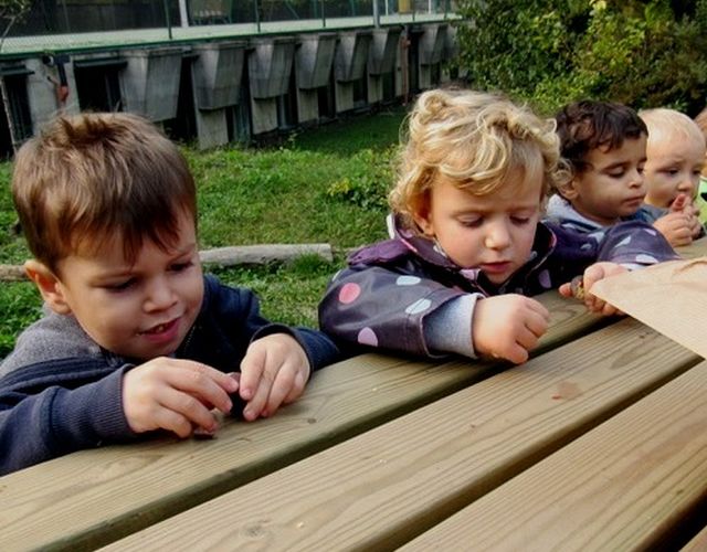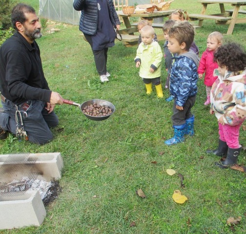 In una bella giornata di autunno, i bambini del nido vanno a castagne.