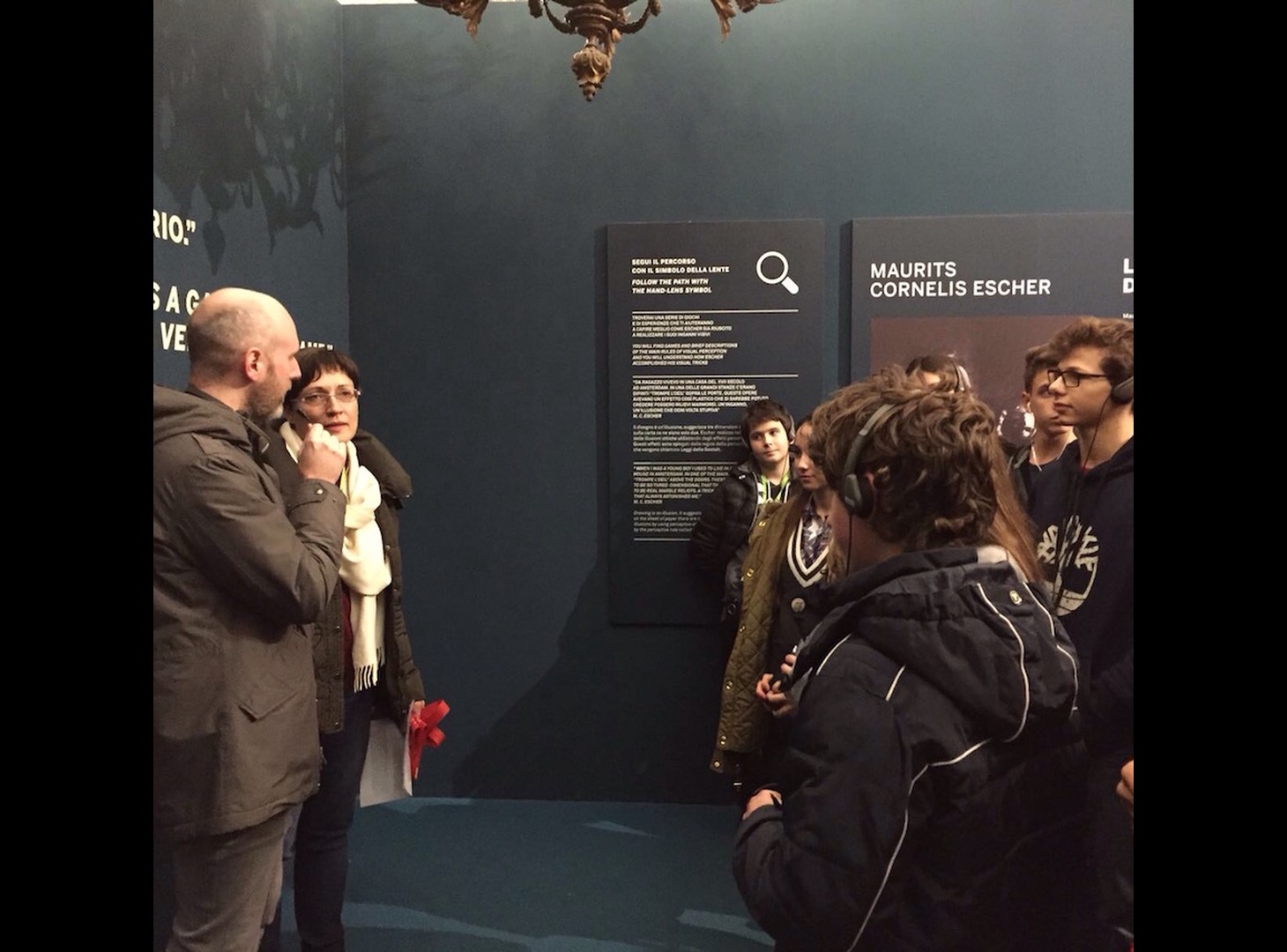 I ragazzi hanno avuto l'opportunità di apprezzare le opere dell'artista olandese, scomparso poco più di quarant'anni fa (1972) e sono stati guidati ad una riflessione sui concetti matematici di spazio, tassellazione, infinito e paradosso, temi che pervadono tutto il lavoro di Escher.