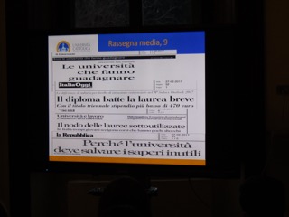 Il dott. Faldi, con l’ausilio di numerosi dati e tabelle, ha illustrato il grande panorama universitario, oggi molto frastagliato, e che permette una personalizzazione molto alta del percorso. Più che in precedenza, gli studi post-diploma si aprono a possibilità non solo italiane, ma anche estere. Qual è la strada allora?
