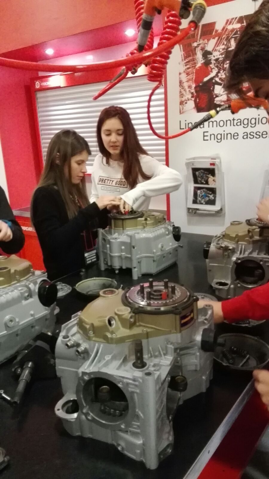 I ragazzi di terza e quarta Liceo scientifico, accompagnati dai loro professori Calzolaio, Borsella e Luciani, sono partiti alla scoperta dei segreti della moto Ducati, visitando il laboratorio "Fisica in moto". È stato un viaggio affascinante all'interno dei principi fisici che fanno funzionare una moto, dall'assemblaggio alla velocità. Attraverso exhibit interattivi, gli alunni hanno toccato con mano i principi della dinamica. Hanno potuto approfondire il funzionamento di un motore a due e quattro tempi, analizzandone tutte le componenti. Si sono scoperti meccanici, capaci di smontare e rimontare una frizione. Una bella occasione per constatare quanto una disciplina aiuti a leggere la realtà.