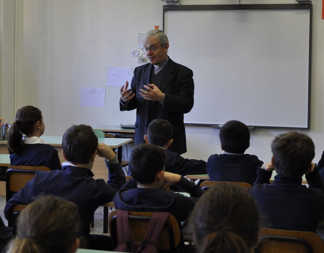 Monsignor Patrizio Garascia ha visitato la Scuola dell'infanzia e la Primaria e incontrato docenti e studenti