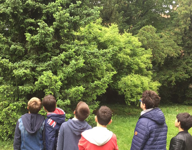 I ragazzi di seconda della Scuola superiore di I grado, guidati dalla professoressa Caterina Azara, botanica e insegnate di scienze naturali al Liceo economico sociale, hanno esplorato il parco della scuola imparando a guardare e classificare le piante. Le bellissime immagini del loro libro di testo hanno lasciato il posto al Taxus baccata o "albero della morte", al Broussonetia papyrifera o "gelso da carta" al grande e vecchio Cedrus libani o "cedro del Libano" con i suoi 400 anni di vita.