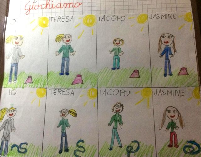Divisi in gruppi da tre o da quattro e con due oggetti per ciascun gruppo hanno scoperto, divertendosi, quante combinazioni potevano fare e, ritornati in classe, hanno rappresentato con molta chiarezza e originalità ciò che avevano sperimentato.