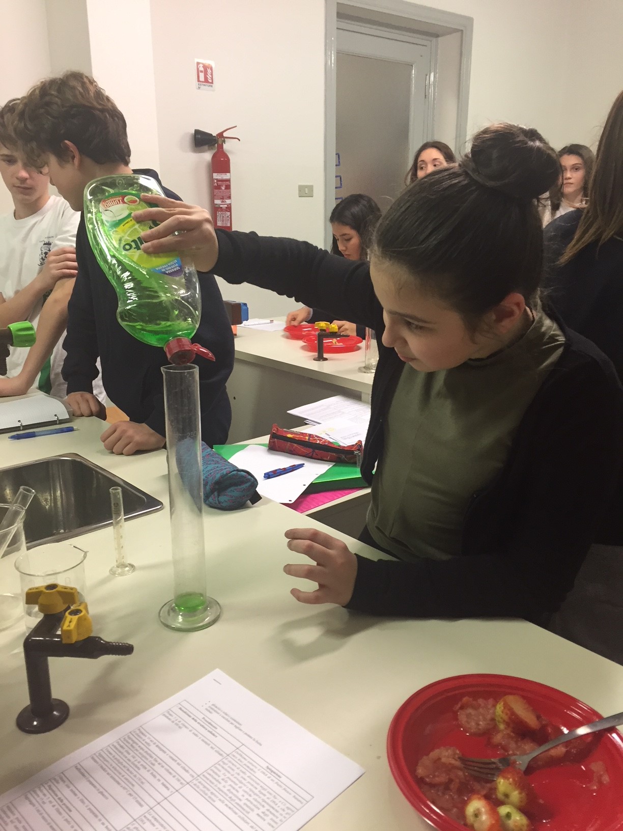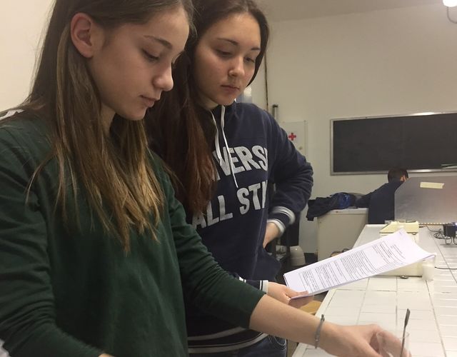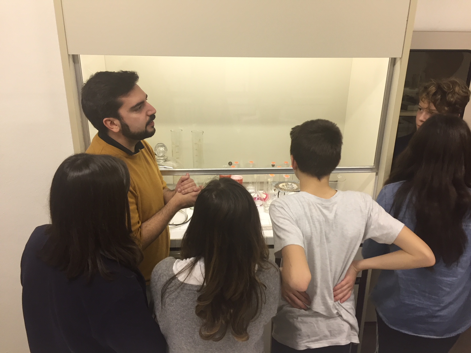 Lavorando in piccoli gruppi, negli spazi del laboratorio della Scuola superiore, i ragazzi della Scuola secondaria di I grado hanno ripercorso tutti i passaggi del protocollo di estrazione, sotto la supervisione dei liceali.