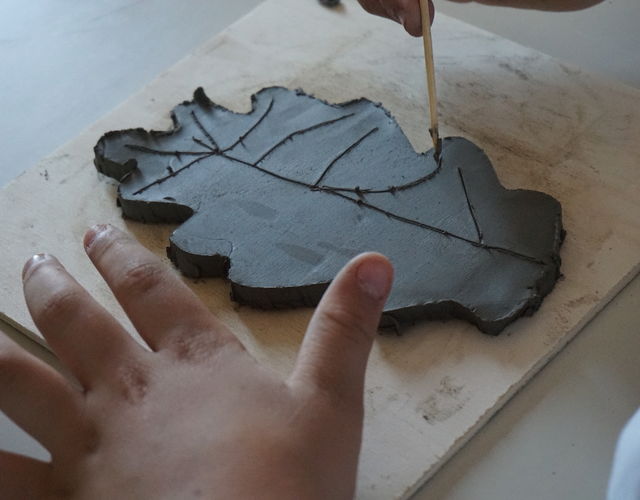 Tra le molte iniziative realizzate in occasione dell'Open Day di sabato 12 novembre, grande successo ha avuto il laboratorio di creta dedicato ai bambini della Scuola primaria. All'interno dell'aula di Arte, la docente di creta Maria Vicari - già responsabile del corso inserito tra le iniziative extra curriculari della Scuola primaria - ha accolto tutti i presenti raccolti attorno a un grande tavolo, ha fatto scoprire questo materiale e ha fatto realizzare una foglia in creta. I bambini hanno scelto tra diverse sagome in compensato riproducenti le foglie di diversi alberi, una volta creata la sagome con la creta hanno aggiunto i dettagli lavorando con un bastoncino di legno.