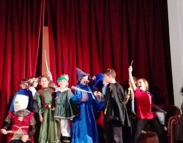 Our children of 5^ grade had the chance to act and play "Excalibur", the legend of King Arthur and Merlin, the powerful wizard. While collaboration is the central principle where all involved share responsibility for the effectiveness of the finished piece in performance, it is English and the dialogues on the stage that are at the heart of the playfulness that drama allows for.