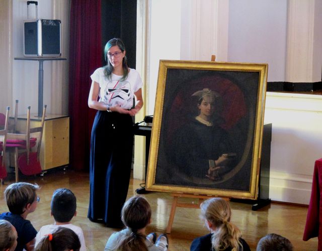 Gli studenti di Prima Media, dopo aver analizzato il quadro della Ritratto di governatrice, hanno creato dei testi letterari immaginandosi storie differenti nelle quali calare il dipinto. Gli studenti della classe Seconda hanno ricostruito, seguendo le regole della prospettiva e della tridimensionalità, il contesto ambientale del dipinto La Contessa Torelli presenta le figlioline alla Vergine.