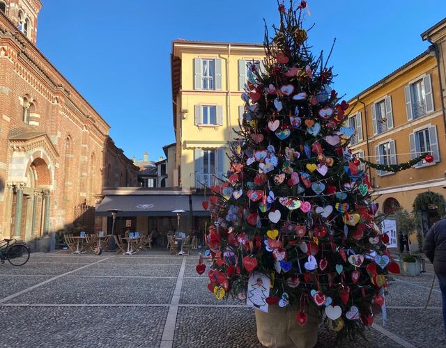 A Monza è stato allestito un albero a misura di bambino. A decorare l'abete, posizionato in piazza San Pietro Martire, in centro città, sono gli addobbi realizzati proprio dai bambini monzesi insieme ai loro insegnanti. Stelline, angioletti e frasi di speranza che colorano la città e rendono più magica l'attesa di queste feste. Anche la Scuola dell’infanzia del Collegio della Guastalla ha partecipato agli auguri di tutte le scuole paritarie di Monza alla città. I cuori creati dai bambini dell’ultimo anno sono stati realizzati con i pastelli ad olio. Al centro del cuore c’è Gesù Bambino.